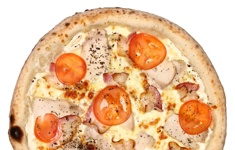 Филе цыпленка, бекон, свежие томаты, чесночный соус, сыр моцарелла